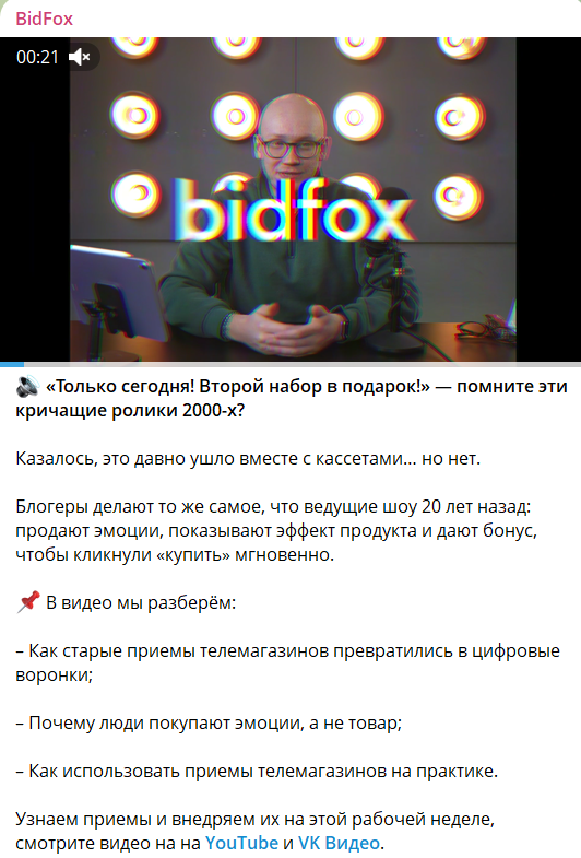 Привлечь подписчиков можно через полезный и разнообразный контент, как например в канале BidFox.