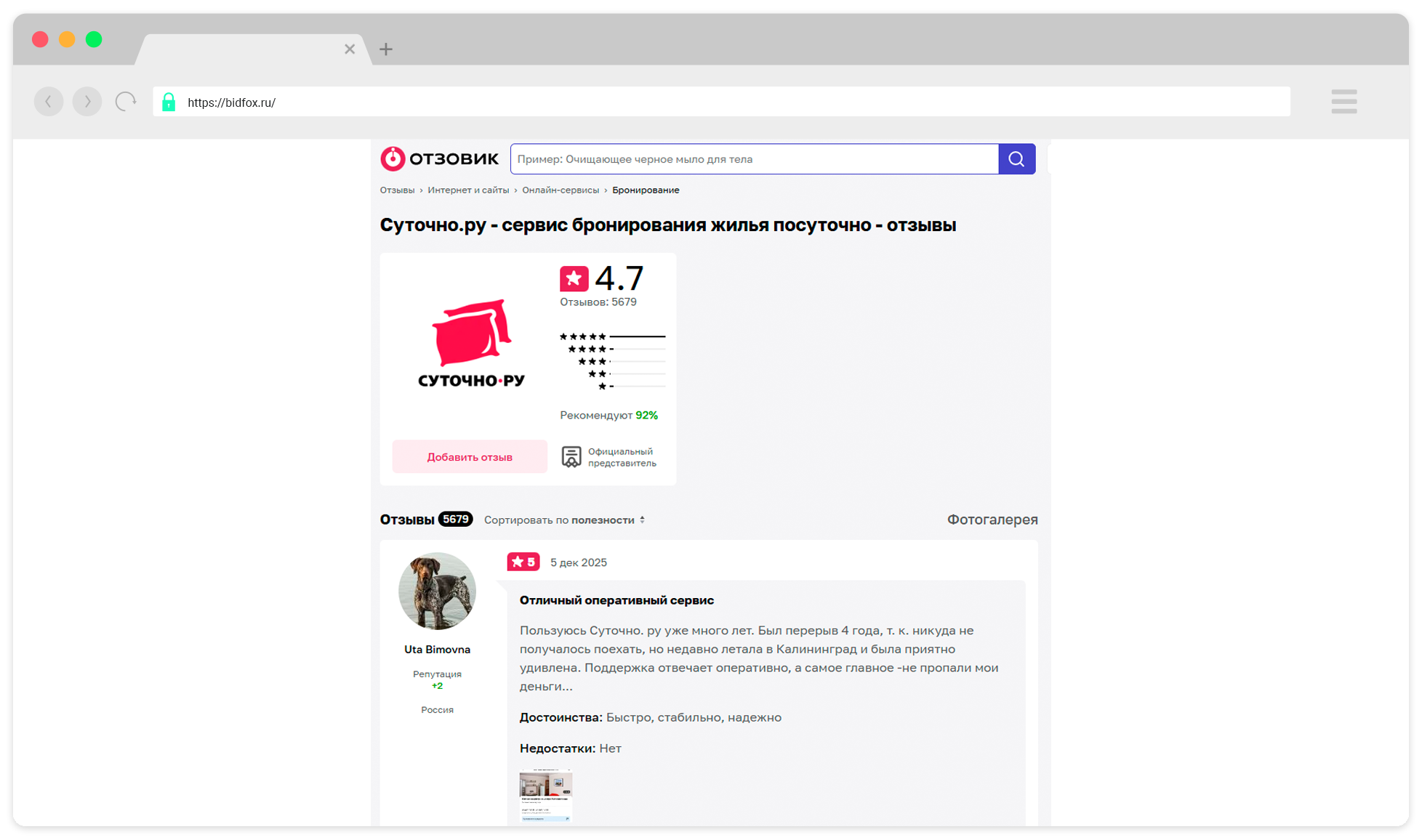 Зарегистрируйтесь в кабинете сервиса BidFox.