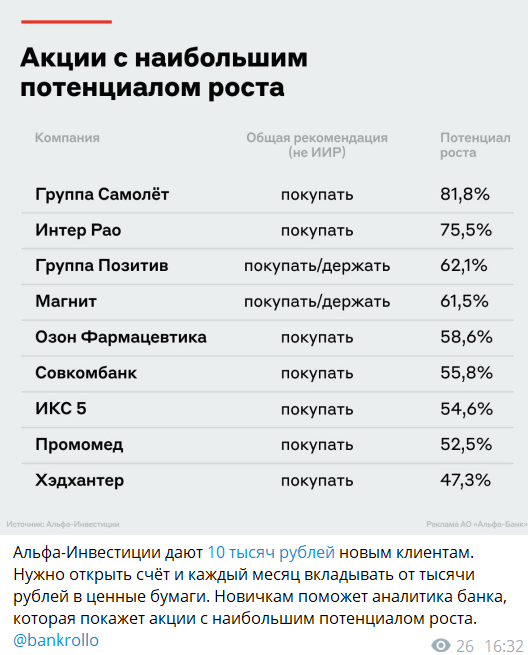 Например: Если вы читаете телеграм-канал про финансы, то вполне логично в нем может разместиться новость об акциях банка.