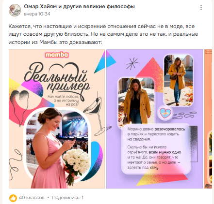 Это напрямую влияет на эффективность рекламы: даже рекламные посты чаще читают, если они встроены в общий контекст ленты.
