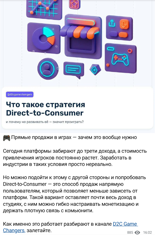 В этом случае Telegram становится не просто каналом, а полноценным активом, который работает на бренд, продажи и монетизацию.